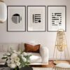 Ο πίνακας “Minimalist Square” απεικονίζει μία γεωμετρική σύνθεση από παράλληλες και οριζόντιες γραμμές, οι οποίες σχηματίζουν γωνιώδη σχήματα σε ένα μοτίβο του κύβου. Στο κάτω αριστερό μέρος διακρίνεται ένας μαύρος κύκλος, προσθέτοντας αντίθεση και δυναμική στην εικόνα. Το έργο αυτό προσθέτει βάθος και ενδιαφέρον σε οποιοδήποτε μοντέρνο χώρο. Η υψηλής ποιότητας εκτύπωση σε καμβά διασφαλίζει την αντοχή του έργου, κάνοντάς το κατάλληλο για κάθε δωμάτιο. Συνδύασε τον πίνακα με άλλα διακοσμητικά στοιχεία για να δημιουργήσεις μια ολοκληρωμένη εμφάνιση.