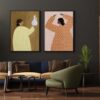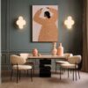 Ο πίνακας “The Woman With the Checked Dress” ανήκει στη συλλογή Φιγούρες και παρουσιάζει μια γυναικεία μορφή με υψωμένα χέρια, ντυμένη με ένα χαρακτηριστικό φόρεμα σε καρό μοτίβο. Οι αποχρώσεις της ώχρας, του ροζ και του κόκκινου δημιουργούν μια ευχάριστη, ζεστή χρωματική παλέτα, ενώ το αφαιρετικό φόντο αναδεικνύει τη φιγούρα και την αίσθηση κίνησης. Το έργο αποπνέει ηρεμία, σιγουριά και αίσθηση ελευθερίας, καθιστώντας το ιδανική επιλογή για το γραφείο, την κρεβατοκάμαρα ή την είσοδο.