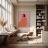 Ο πίνακας “The Woman with the Swirls” απεικονίζει μια γυναίκα τυλιγμένη σε ένα ριγέ φόρεμα με έντονα πορτοκαλί και λευκά σχήματα, που δημιουργούν μια αίσθηση κίνησης και ζωντάνιας. Το ροζ φόντο προσθέτει μια απαλή και ονειρική διάθεση, ενώ η απλή αλλά εκφραστική φιγούρα της γυναίκας προσδίδει στο έργο μια αίσθηση ηρεμίας και γλυκύτητας. Η υψηλής ποιότητας εκτύπωση σε καμβά διατηρεί την ένταση των χρωμάτων και την καθαρότητα των γραμμών, εξασφαλίζοντας ότι το έργο θα παραμείνει ζωντανό και εντυπωσιακό για χρόνια. Ο πίνακας είναι ιδανικός για την προσθήκη μιας μοντέρνας και παιχνιδιάρικης νότας σε οποιονδήποτε χώρο, όπως ένα καθιστικό, υπνοδωμάτιο ή ακόμα και έναν δημιουργικό χώρο εργασίας. Η ζεστή παλέτα χρωμάτων και η μοναδική σύνθεση του “The Woman with the Swirls” τον καθιστούν κατάλληλο για να φέρει φρεσκάδα και ζωντάνια στη διακόσμηση του σπιτιού σας. Τοποθετήστε τον σε έναν χώρο με φυσικό φως για να αναδείξετε την ομορφιά και τη λεπτομέρεια του έργου. Συνδυάστε τον με άλλα στοιχεία διακόσμησης σε απαλούς τόνους για να δημιουργήσετε μια αρμονική και ευχάριστη ατμόσφαιρα.